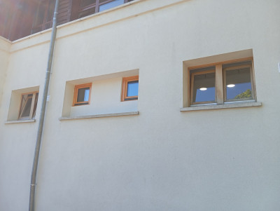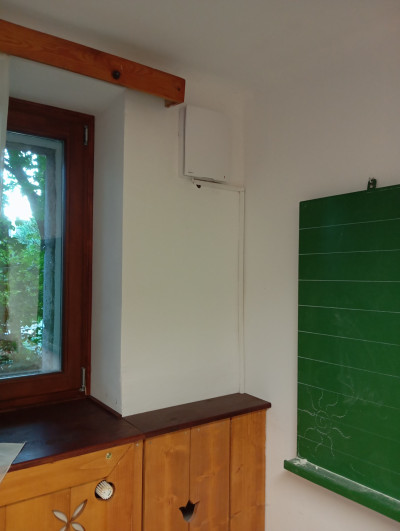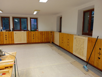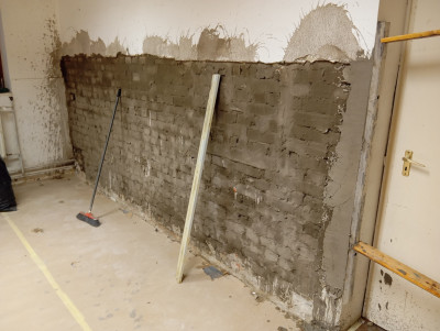 Júniusban alig tették ki lábukat a diákok az iskolából, rögtön megkezdődött a néptáncterem vizesedésének feltárása, és a dohosodás megállításának megoldása. A kerti falról levert vakolat helyére salétromosodást gátló réteg és a fal szellőzését biztosító, csodaszép Zenga-féle deszkaburkolat került. Eltűnt a régi csempeburkolat, a párkányok és az ajtó rendbehozása mellett kitakarították és kijavították az ereszt, és a járdaszint alatti szigetelést kipótolva kizárták a külső, eresz felőli vizesedés lehetőségét is. Végül egy tisztasági festés után beszerelték a hővisszanyerő szellőztetőket is. Nagyon köszönjük a Hajnalcsillag Alapítványon keresztül adott szülői adományokat, és a Varga család keze munkáját!