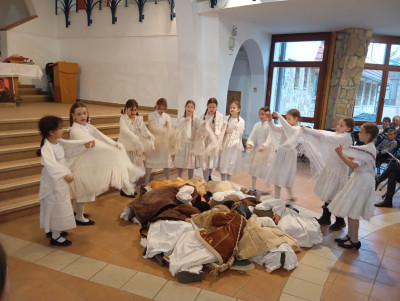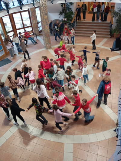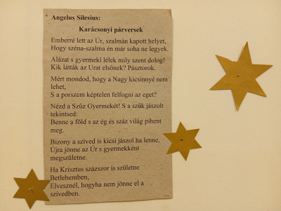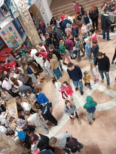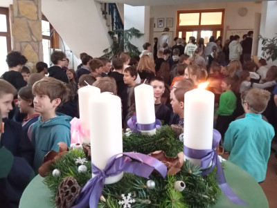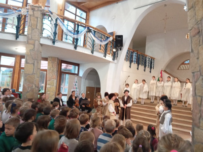 A pezsgő adventi kézműves nap és vásár, amiből kezdőlépésként a közeli Tanodát és a távoli Zsobok árvaházát tudtuk támogatni, kezdte a sort. Számos osztály eljutott egy-egy hajnali gyertyafényes, gitáros vagy latin nyelvű rorátéra. Az alsósok Mikulás-ünnepe, a szombati Társasjátéknap, vagy a karácsonyi pulcsis nap vidámsága már az örömvasárnapra hangolta szívünket. A tanszaki koncertek mellett két nagykoncertünkön is komoly zenei élmények vihettek közelebb minket a karácsonyi titkokhoz: Szigeti Bence gitár- és Schwartz Zoltán hegedűművész gyertyafényes hangversenye, a Bazsinka-család meghitt és Andorka-darabbal gazdagított koncertje, valamint a zeneiskola adventi nagykoncertjének szóló-, kamara- és kórusprudukciói gyönyörködtettek minket. Köszönet azoknak, akik az Angyalbatyu karitatív akció útján a helyi és a kárpátaljai gyerekeknek szereztek örömet! A közös hétfői gyertyagyújtások, az utolsó héten a tanárok Christmas carols villámkoncertjei, a néptáncosok autentikus bölcsőcskézése, a 4.a osztály betlehemese, végül a nagyobbak taizéi imaestje, amelyet Lackfi János tanúságtétele vezetett fel, és a kisebbek forgószínpad-szerű lelki napja tette teljessé a készületet. Köszönjük minden közreműködőnek és szervezőnek, atyának és lelkipásztornak, szülőnek és munkatársnak, hogy tartalmas és szép adventünk lehetett! Képek a csatolt Galériában.