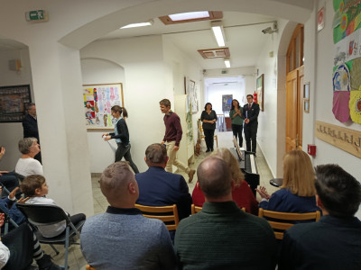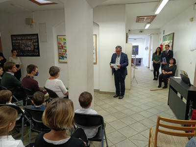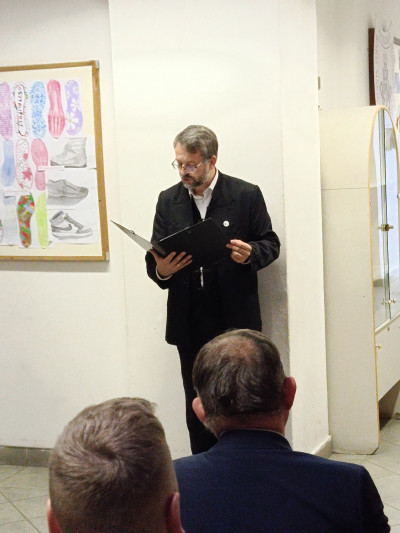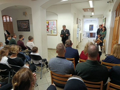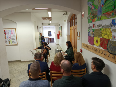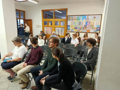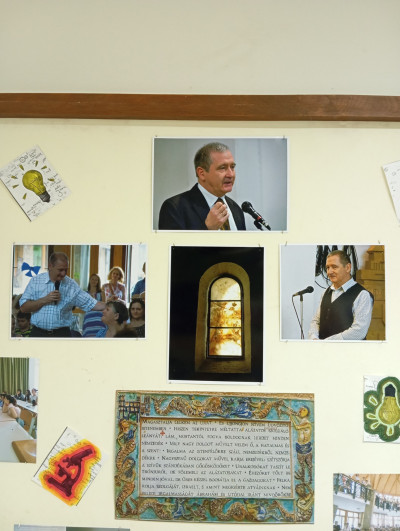 2025. december 12-én lett volna 66 éves András bácsi, újraindult iskolánk alapító igazgatója. Az Ő emlékére neveztük el a fizika-kémia előadótermünket egy bensőséges és méltó ünnepség keretében, amelyre meghívtuk a család mellett András néhány kémiatanár és igazgató kollégáját, régi diákjait, barátait. Minden osztályból egy-egy tanuló képviselte a jelen diákságot, az igazgatói, hitvesi és tanári emlékező beszédek mellett a művészeti tanárok és a közösség énekének dallamai elevenítették meg az emlékező szavakat és képeket. A terem bejáratához ízülő táblát András bácsi gyermekei leplezték le, és Andrást a betegségében kísérő Szabolcs atya áldotta meg. Az ünnepség részeként a könyvtárban egy szerény agapé mellett a régi diákok 2019-ben készített összeállítását néztük meg. Egy igaz ember. 2025. december 12-től az előadótermünk az ő nevét viseli. A műsor leírása - benne a beszédek - a részletekben olvasható.