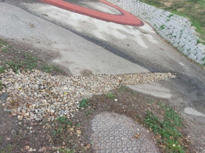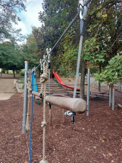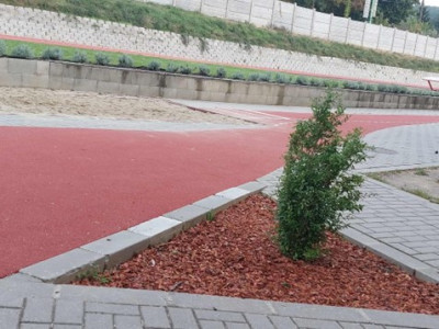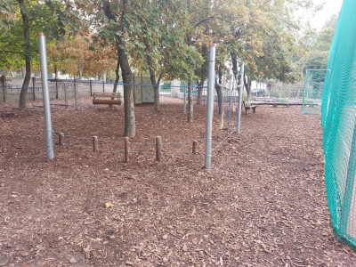 a játszótéren rögzítettük és visszatemettük a geotextilt, a játszótéri elemek drótvégeit ragasztószalaggal rögzítettük,