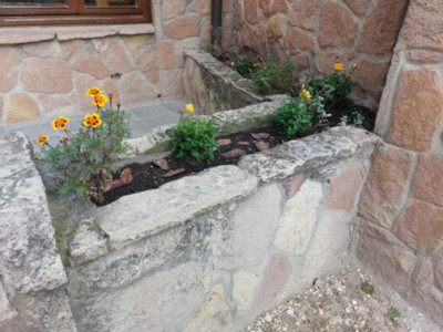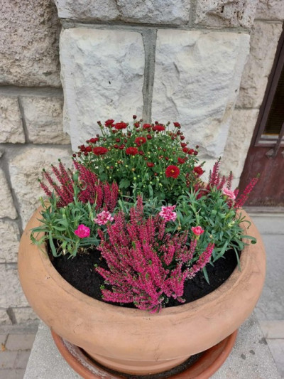 a főbejárat előtti két cserépbe új virágok ültetésére.