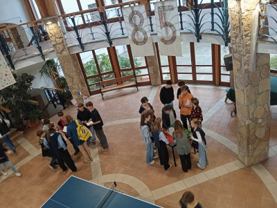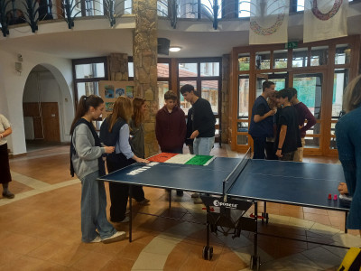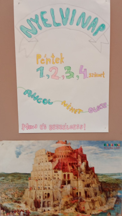 2025. október 17-én, az óraközi szünetekben vidám forgatag lepte el az aulát és a folyosókat: az idei nyelvi nap céljául ugyanis azt tűzte ki a nyelvi munkaközösség, hogy idegen nyelven történő beszélgetésre invitáljuk a szünetekben a diákokat. Az egyes állomásokon tanárok, felsőbb éves diákok várták a beszélgetni vágyókat, akik a néhány mondatos társalgással pecséteket gyűjthettek. Mivel első alkalommal választottuk ezt a formát a nyelvi nap keretéül, akadtak nehézségek, elsősorban abból az örömteli okból kifolyólag, hogy nagyon sok volt a beszélgetni vágyó, és hosszú sorok kígyóztak egy-egy állomásnál. Sok diáknak tetszett, hogy nem csak az általa az iskolában tanult nyelvet gyakorolhatja, hanem más nyelveket is, amit iskolán kívül tanul. A nagy érdeklődést látva elhatároztuk, hogy a hibákat kijavítva tavasszal újra életre hívjuk ezt a bábeli nyelvzavart a szünetekben. Köszönjük mindenkinek az aktív részvételt!