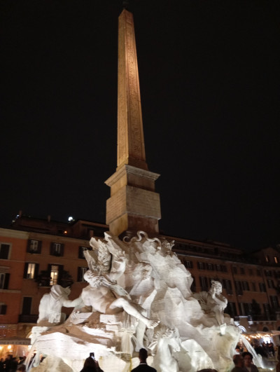 A hatalmas templom bejárása és az egyéni ima után a közeli Jeruzsálemi Szent Kereszt bazilikába sétáltunk át. Krisztus keresztáldozatának emlékeit szemlélve együtt énekelhettük: 'Királyi zászló jár elől, keresztfa titka tündököl...' Aznap még a barokk belváros látnivalói, a Spanyol lépcső, a Trevi-kút, a Pantheon, az éppen bezáró Santa Maria sopra Minerva templom, majd a Piazza Navona esti tömegében vegyülhettünk el.