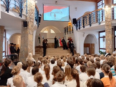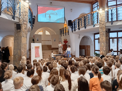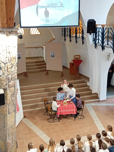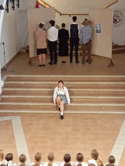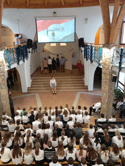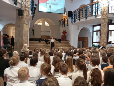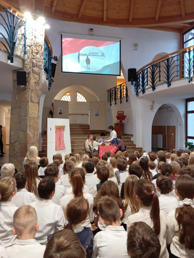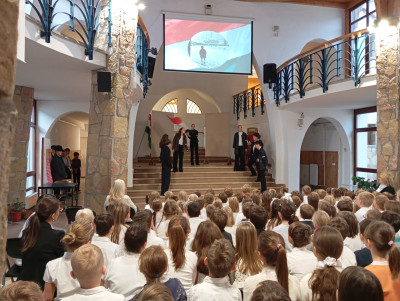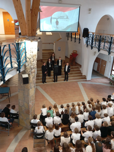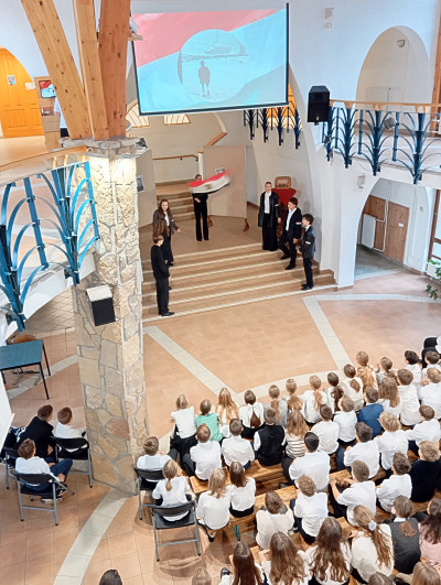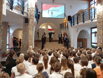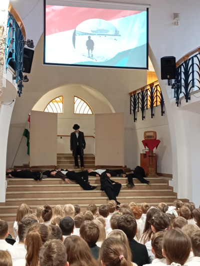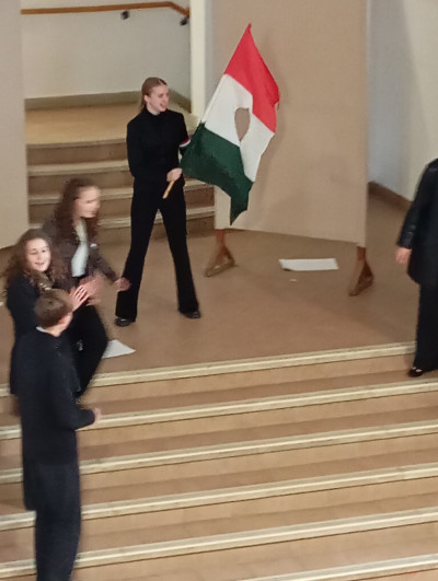 A 10.g osztályosok és fiatalabb vendégművészeik Márti és Kriszta néni rendezésében szép és felemelő műsorral segítettek mindnyájunknak megemlékezni a '56-os forradalom és szabadságharc eseményeiről. Hálásan köszönjük!